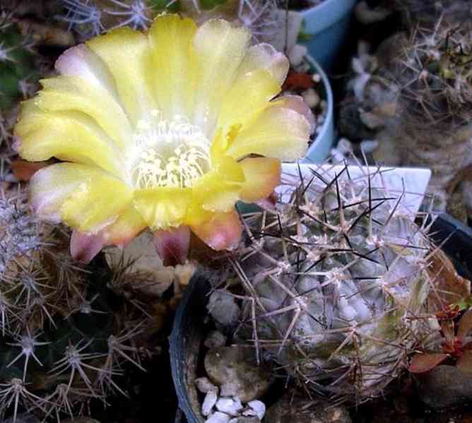 Acanthocalycium thionanthum je působivý kaktus rostoucí ve výškách 1500 m n.m v Argentině, s jednoduchým kulovitým až cylindrickým, zeleným nebo šedozeleným tělem a plochými kořeny. Kaktus má 14 a více žeber a v jednotlivých areolách 8 – 16 trnů o délce 1,5 – 3 cm. Nádherné, zvonkovité květy jsou světle nebo tmavě žluté. Balení obsahuje 10 semen za 19 Kč. Semena – neoseeds