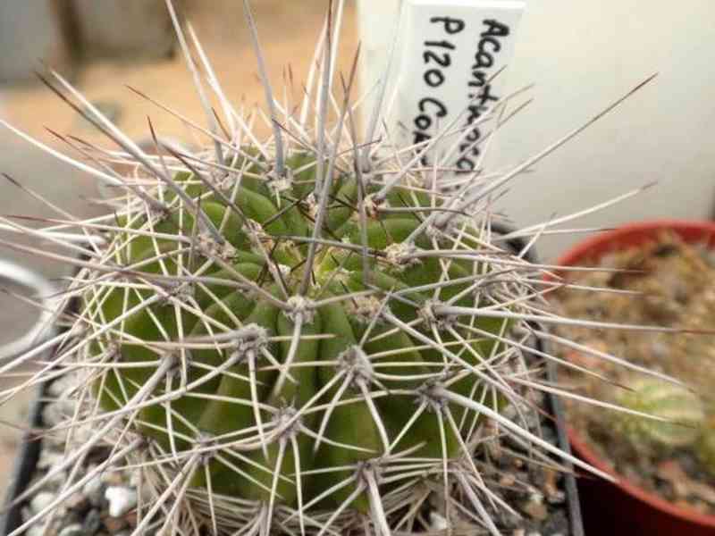 Acanthocalycium sp. FR 148 je kaktus nalezený v Argentině. Celý rod roste v severní Argentině od Cordoby až téměř k bolivijské hranici ve středních až vysokých výškách. Zkratka sp. znamená species. Používá se u rostlin z přírodních lokalit, které ještě nejsou popsány (botan. název) nebo jsou prozatím nezařazené do systému na základě příbuzenské vazby k druhu. Rod Acanthocalycium byl popsán původně pro 9 druhů z Argentiny, které byly dříve zařazovány do rodu Echinopsis. Tyto obvykle solitérní rostliny jsou kulovité až protáhlé, se zploštělým vrcholem, bledě až tmavě zelené barvy, s četnými žebry. Areoly, obvykle žlutohnědé barvy, nesou 10 - 20 pružných žlutohnědých trnů (u starších rostlin šedých). Nálevkovité či zvonovité květy, otevřené během dne, se pohybují od bílé přes oranžovou, růžovou až po fialové odstíny. Plody jsou tvrdé, kulovité, v průměru asi 1 cm. Semena jsou hnědá až černá. Balení obsahuje 20 semen za 22 Kč. Semena – neoseeds