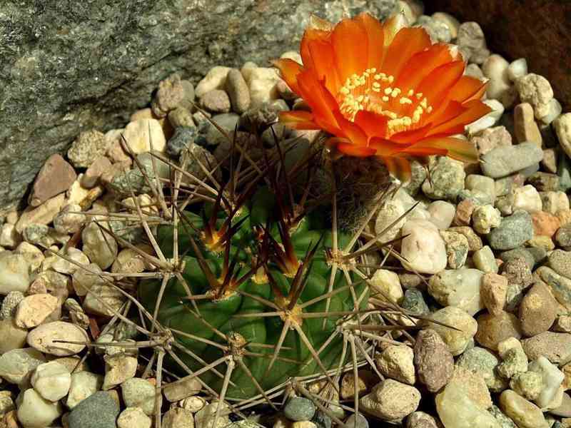 Kaktus Acanthocalycium aurantiacum pocházející z Argentiny je kouzelný svými oranžovo-žlutými obřími květy dosahující průměru přibližně 5 cm. Tělo je široce kulovité, výška kaktusu je okolo 5 cm a šířka může být až 9 cm. Rostlina má šedozelené zbarvení, 10 - 16 žeber, jeden středový trn a 5-7 okrajových světlých trnů s černým hrotem, které mohou dosahovat až 5 cm délky. Balení obsahuje 10 semen za 25 Kč. Semena – neoseeds