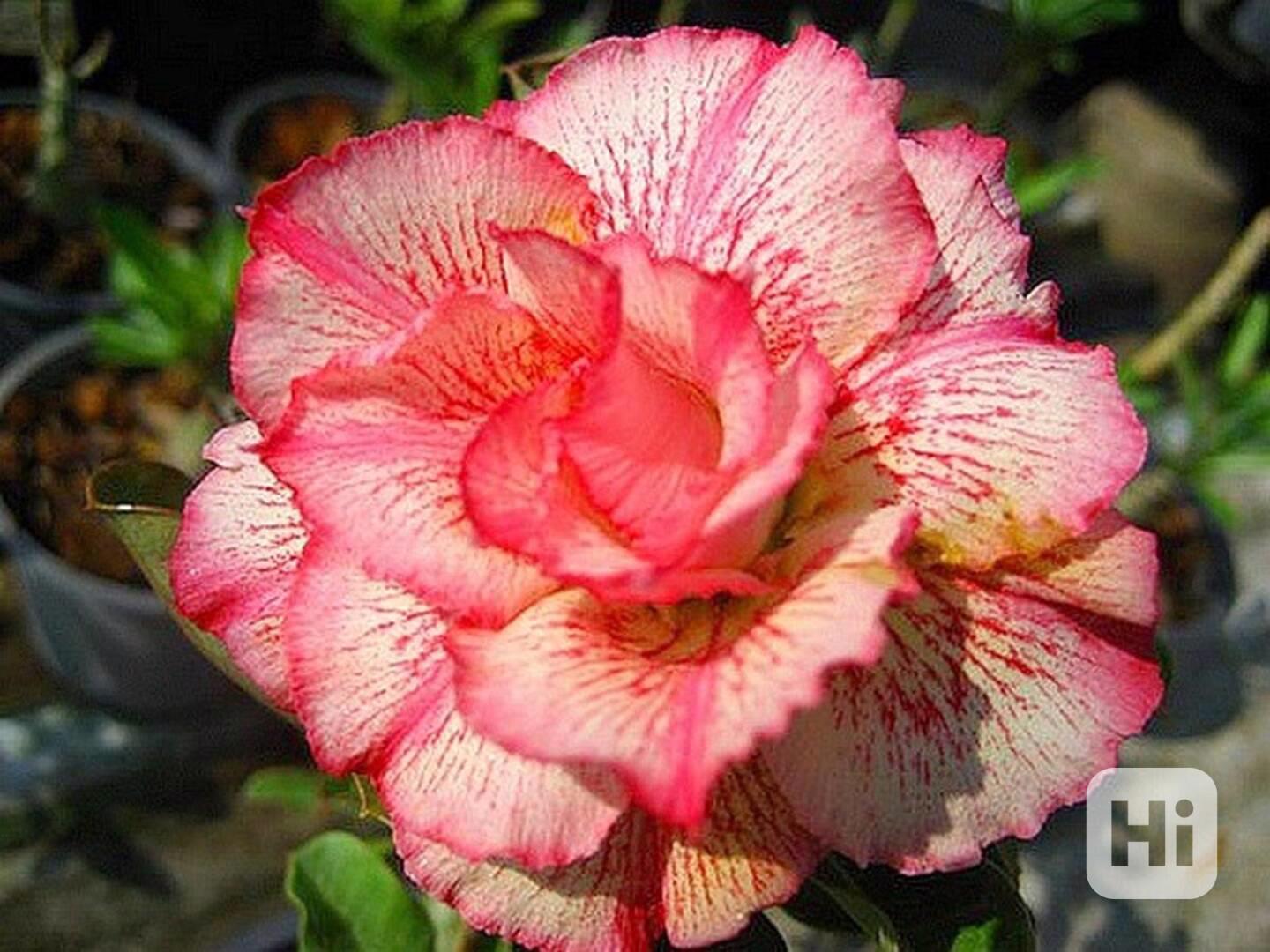 Adenium Obesum "pouštní růže" je nádherná sukulentní rostlina. Pro své bohaté květenství je nazývána pouštní růží, v přírodě rostoucí jako keře nebo stromky se ztloustlým kmenem někdy bizarních tvarů částečně ukrytým pod zemí. U nás je pěstována jako velice dekorativní exotická pokojová rostlina vhodná zvláště pro tvorbu kvetoucí sukulentní bonsaje a nenáročná na pěstování. Je teplomilná a dobře snáší suchý vzduch, proto je vhodná i do ústředně vytápěných interiérů. Květy adénií se vyskytují ve velké paletě nádherných jasných barev. Balení obsahuje 5 semen za 43 Kč. Semena - neoseeds