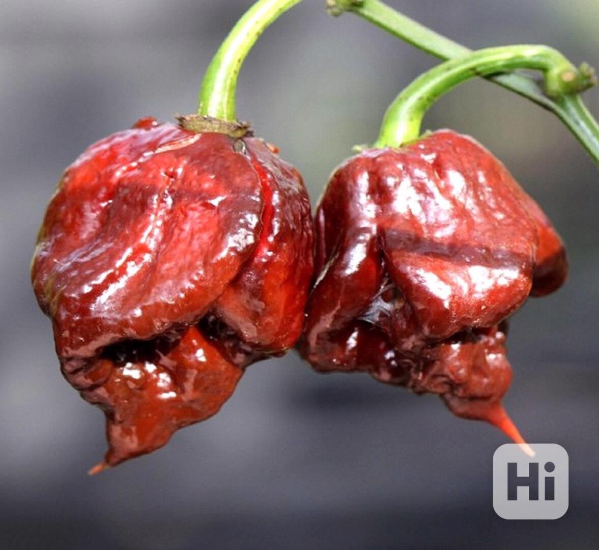 Chilli paprička Carolina Reaper Chocolate (Capsicum chinense) je čokoládově zbarvenou variací červené Caroliny Reaper, což je nejpálivější chilli paprička na světě. Ačkoli nebyla tato varianta oficiálně testována, konzumenti se shodují, že je co do pálivosti podobná své červené sestře, možná i agresivnější a dosahuje průměrných hodnot více než 1 500 000 SHU. Chuť je rovněž podobná jako u červené Caroliny Reaper, tedy ovocná, sladká, jen má navíc uzené aroma, což se skvěle hodí k masu, ale i do omáček a pikantních pokrmů jak v čerstvém, tak i sušeném stavu. Vzhledem k jejich pálivosti je ale třeba dát pozor na dávkování. Doporučujeme při práci s touto chilli papričkou používat rukavice. Balení obsahuje 10 semena za 40,- Kč.