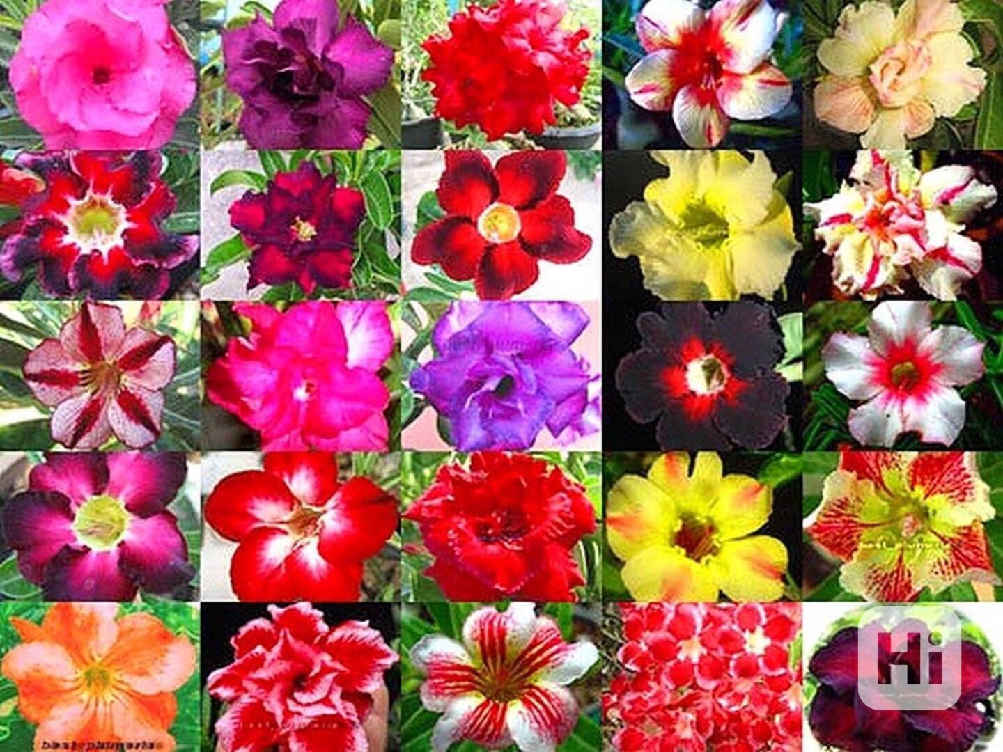 Adenium Obesum "pouštní růže" je nádherná sukulentní rostlina. Pro své bohaté květenství je nazývána pouštní růží, v přírodě rostoucí jako keře nebo stromky se ztloustlým kmenem někdy bizarních tvarů částečně ukrytým pod zemí. U nás je pěstována jako velice dekorativní exotická pokojová rostlina vhodná zvláště pro tvorbu kvetoucí sukulentní bonsaje a nenáročná na pěstování. Je teplomilná a dobře snáší suchý vzduch, proto je vhodná i do ústředně vytápěných interiérů. Květy adénií se vyskytují ve velké paletě nádherných jasných barev. Balení obsahuje 5 semen za 37 Kč. Semena - neoseeds