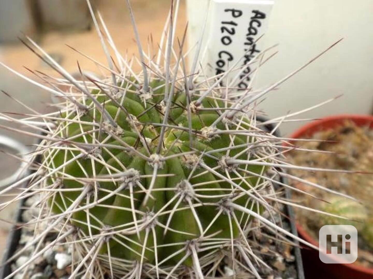 Acanthocalycium klimpelianum P 120 je kaktus pocházející ze severovýchodní Argentiny, z provincie Cordoba, ve výšce 800 m n. m. Má kulatý tvar šedozelené barvy, dorůstající výšky 8 cm a šířky cca 10 cm, s přibližně 19 žebry. Aeroly jsou od sebe vzdáleny asi 2 cm. 6 až 10 šídlovitých, nestejně dlouhých centrálních trnů a 2 centrální trny z nichž ten delší (cca 2 cm) směřuje šikmo dolů. Trny barvy šedé s hnědou špičkou, později celé šedé. Květy trychtýřovité, 3 - 4 cm dlouhé, až 5 cm široké, semeník porostlý šídlovitými šupinami, okvětní plátky bílé se zřetelně odstávající hnědou špicí. Balení obsahuje 20 semen za 22 Kč. Semena – neoseeds