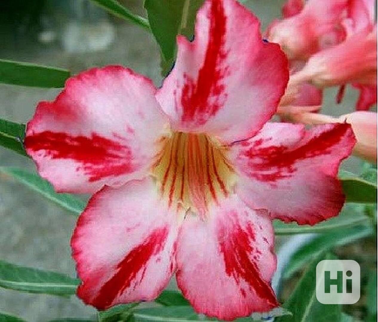 Adenium Obesum "pouštní růže" je nádherná sukulentní rostlina. Pro své bohaté květenství je nazývána pouštní růží, v přírodě rostoucí jako keře nebo stromky se ztloustlým kmenem někdy bizarních tvarů částečně ukrytým pod zemí. U nás je pěstována jako velice dekorativní exotická pokojová rostlina vhodná zvláště pro tvorbu kvetoucí sukulentní bonsaje a nenáročná na pěstování. Je teplomilná a dobře snáší suchý vzduch, proto je vhodná i do ústředně vytápěných interiérů. Květy adénií se vyskytují ve velké paletě nádherných jasných barev. Balení obsahuje 5 semen za 43 Kč. Semena - neosels