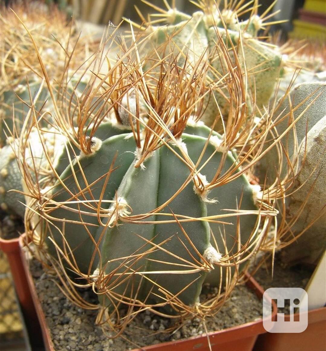 Kaktus Astrophytum senile var. aureum MZ 256 Sierra De La Paila se nachází ve státě Coahuila, v severovýchodní části Mexika, v oblasti pohoří Sierra de la Paila. Značka MZ 626 značí, že jde o typový sběr Milana Zachara z této oblasti. Tento kaktus je oficiálně brán jako synonymum odrůdy Astrophytum capricorne var. aureum, ale z úcty k českému cestovateli Alberto Vojtěchu Fričovi, který jej v roce 1923 popsal, ho uvádíme stále pod tímto jménem. Tyto variety rostou na vápencových kopcích v nadmořské výšce okolo 1 000 m. Jako mladé jsou kulovité, později se protahují až do sloupovitého tvaru o délce 35 – 40 cm a průměru 15 cm. Tmavě zelený kmen je pouze s malým počtem vloček nebo zcela bez vloček. Kruhovité aeroly jsou nejdříve holé, později pokryté chomáčky vlny a nacházejí se ve svislých řadách podél žeber, kterých je obvykle 8. Typické svými dlouhými (až 10 cm), jemnými, do všech stran směřujícími trny, které obaluji tento kaktus tak, že tělo je sotva viditelné a vypadá jako svazek suché trávy. Počet ostnů 16 – 20 (někdy až 30), v barvě světle žluté až zlatožluté, později hnědé a bělavé. V letních měsících se objevují přímo ve středu rostliny krásné žluté květy s červeným středem o šířce 6 - 8 cm, které se mění na načervenalý měkký plod. Semena jsou hnědá, asi 3 mm velká, přilbicovitého tvaru. Balení obsahuje 20 semen za 24 Kč. Semena – neoseeds
