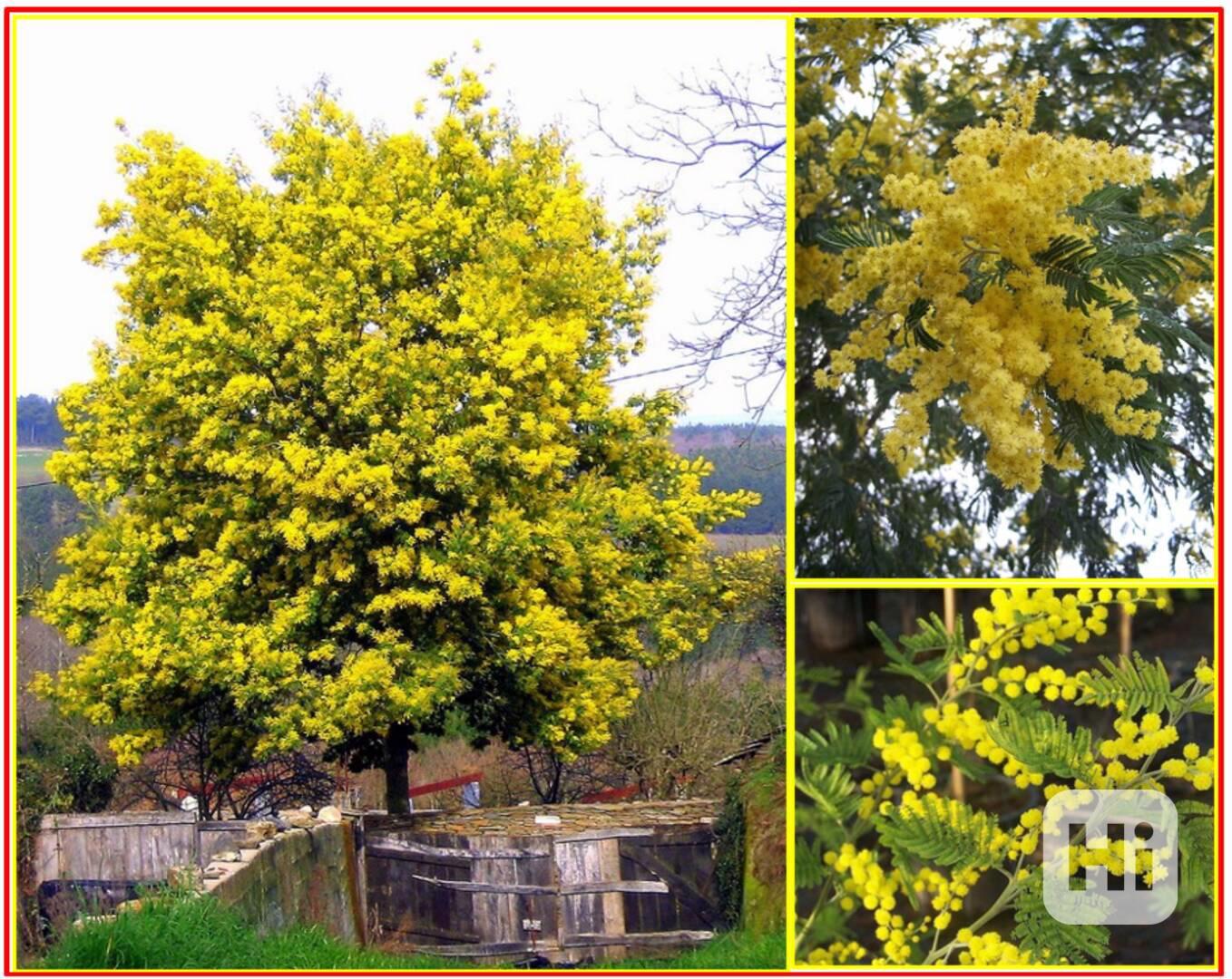 Acacia dealbata - akácie sivozelená nebo také Kapinice pobílená či mimóza je nejznámější druh akácie, původně pocházející z jihovýchodní Austrálie a Tasmánie, dnes již rozšířená po celém světě, má silně aromatické žluté květy nádherně vonící po fialkách a je považována za symbol jara. Tento dekorativní rychle rostoucí a stále zelený okrasný strom nebo keř s hladkou šedou hnědou či tmavě hnědou kůrou má zpeřené tmavě zelené listy připomínající kapradiny o délce až 17 cm. Květenství je trsovité se žlutými drobnými kvítky ve tvaru pomponku používající se v kosmetice a parfemářství, ale také k výrobě žlutého barviva. Plodem je plochý lusk, 4 - 12 cm dlouhý, mírně pokroucený. Acacia dealbata je ideální rostlina na balkon a terasu, s krátkodobou mrazuvzdorností u starších rostlin až do -5 °C. Dobře snáší zástřih, takže je vhodná na vytváření bonsají.